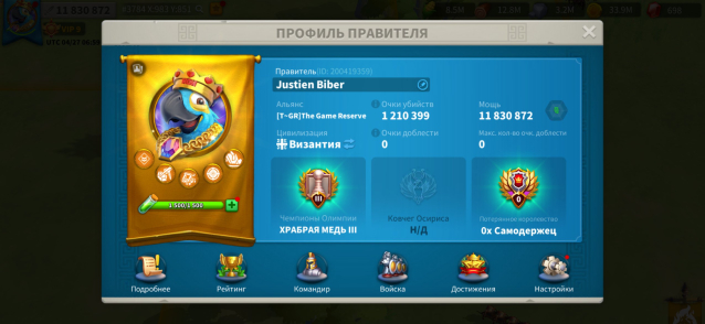 Краткое описание: 23 ратуша, 11,8М мощи, 26 легендарных командира, Т4 юниты, королевство фиона #3784