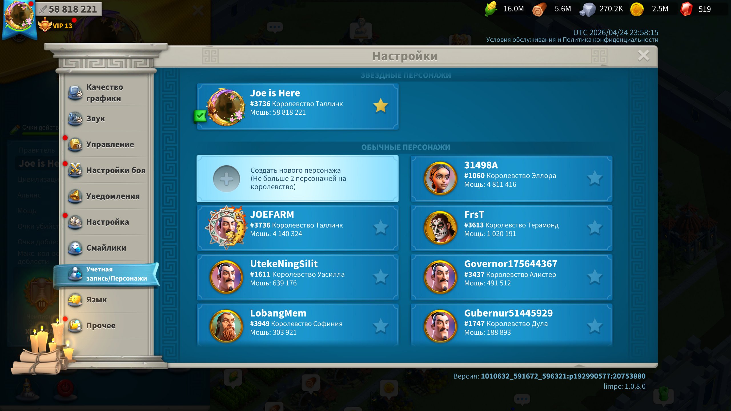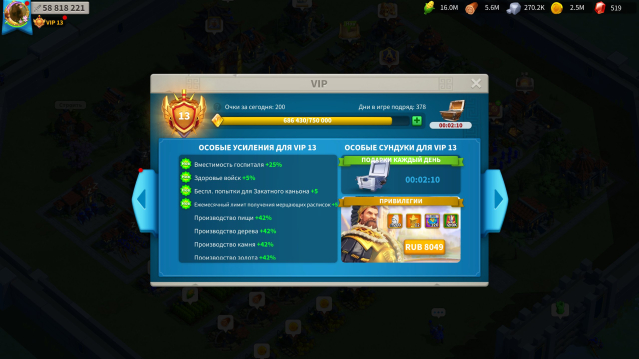 Подробное описание: 🔥Аккаунт в королевстве 3736🔥58.8 миллионов мощи🔥13 вип уровень, до 14 осталось 64 тысячи очков🔥