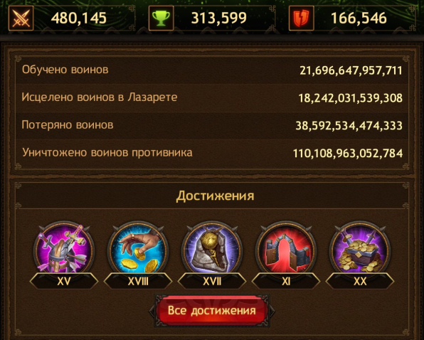 1. основа дом 44 ур, вип 82, все гарды 15 уровня, есть одна шмотка правителя(амулет) можно купить еще две в ците 1.2B+ медалей(возможно куплю сам каску и желетку)… много ресурсов, хорошая стата, ачивки. Основной вид войск пехи, но можно играть всеми видами. Есть поход на шпиков дикая виверна.