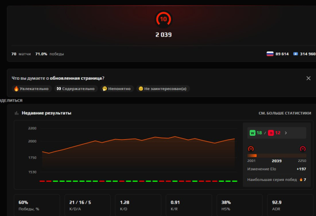 Краткое описание: Faceit 10LVL 2039 ELO 70matches