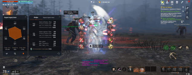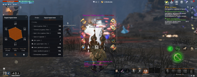 ℹ️ Другие Характеристики: Крит. Атк. 104%, Шанс Двойного Урона 105%, Шанс Тройного Урона 15%, Блокировка Оружия 50%, Увеличение Урона от Оружия 145%, Увеличение Урона от Умений 158%, Сопротивление Оглушению 18%, Шанс оглушения 39%