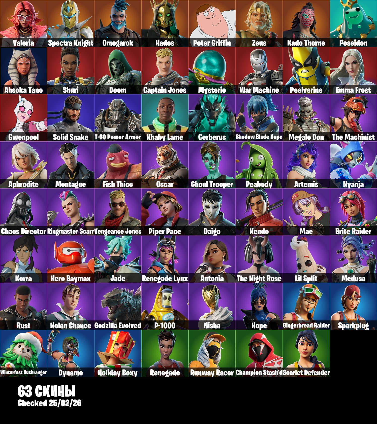 Краткое описание: 🌊👤Аккаунт 63 Скинов👤💦👾Ghoul Trooper👾💪Dynamo💪🌀Sparkplug🌀👤Gingerbread Raider👤📧Смена почты📧