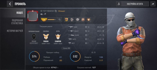 Звание: Gold lVКраткое описание: Отличный аккаунт 💎 Много инвентаря 🔪 2 ножа 🧤 Перчатки 🔥 Много скинов 💰 Готов к игре