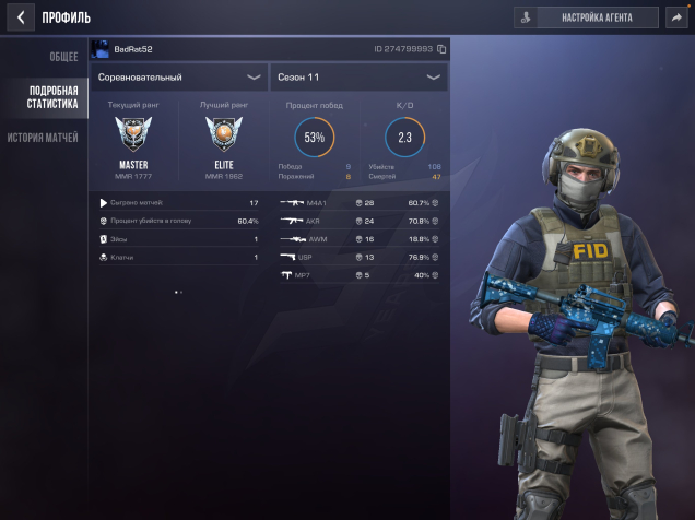 Звание: LegendКраткое описание: ТОП АККАУНТ С СИНИМ СЕТОМ И НОРМ СТАТОЙ
