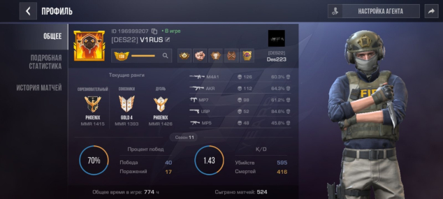 Подробное описание: 138 LVL медальки с 2023 года инвентарь пуст 774 часа фениксы в сореве и дуэлях в союзниках голд 4 лучший ранг Render