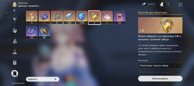 ✅Имеется 2шт Золотой дух попутчика (любой персонаж на выбор из магазина Слияние звёзд)