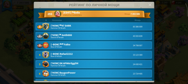 Так же есть другие персонажи (аккаунты), на одном из которых 10 миллионов мощи