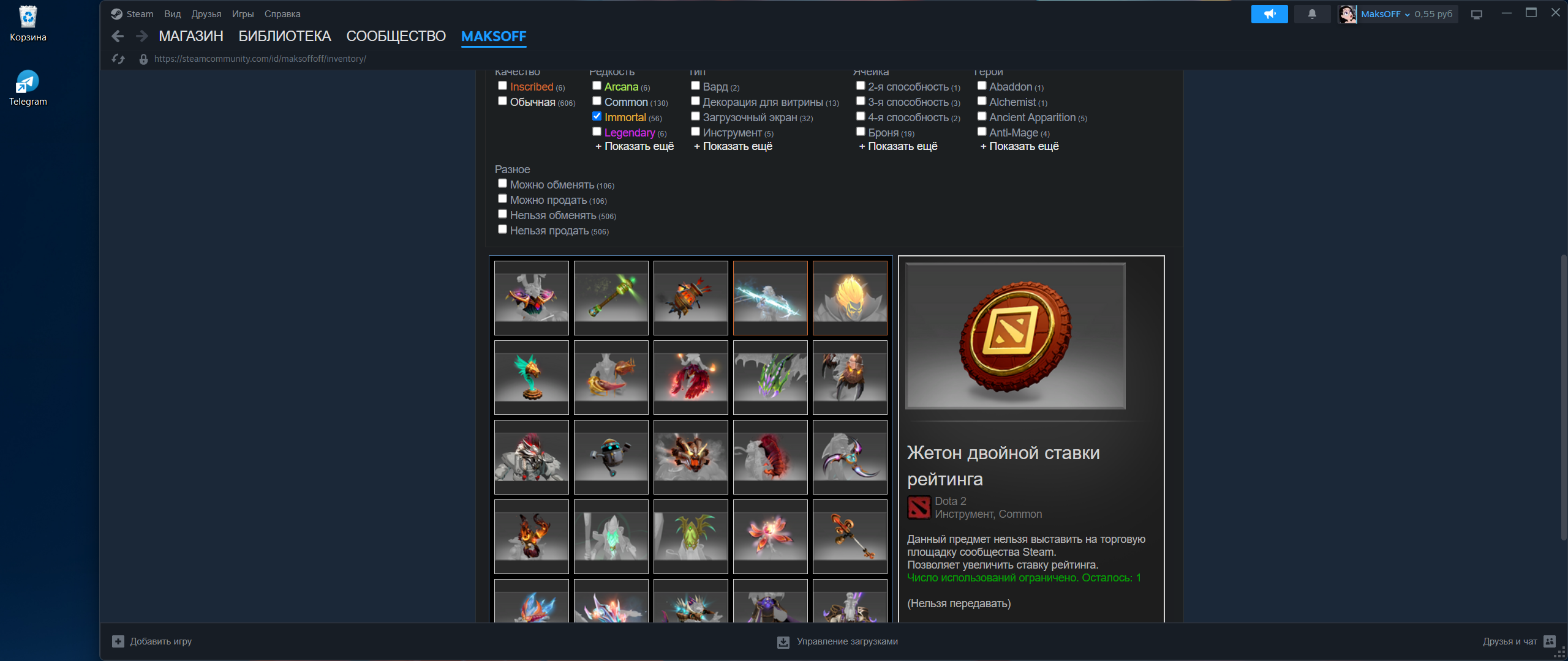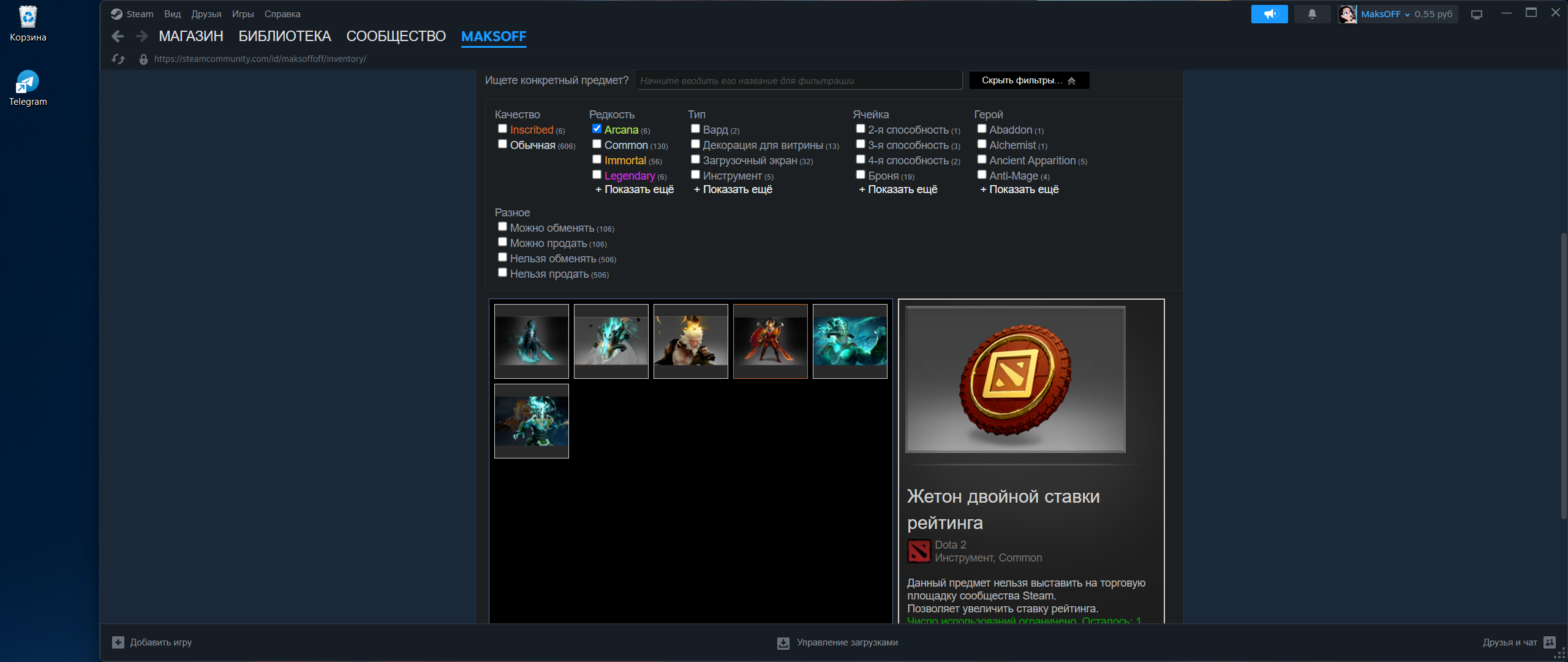 Аккаунт почти 4к часов. 4арканы, много иммортал и эксклюзивных предметов, хорошая порядочность.