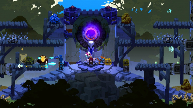 Если оценивать Aegis Defenders именно как платформер, ничего кардинально нового и оригинального игра не предлагает. В ней есть несколько раздражающих недочётов — например, не всегда ясно, на какую платформу можно запрыгнуть, а на какую нет. Порой кажется, будто объект «замылен» и находится на заднем плане, но на деле он функционирует точно так же, как расположенная рядом платформа. Не совсем удобно реализована и стрельба — Клу может палить либо вперёд, либо по диагонали вверх, что делает бои с летающими врагами неудобными. Особенно если вы стоите на небольшом островке, пытаясь не свалиться на шипы, и скачете в разные стороны, одновременно выцеливая какую-нибудь странную птицу. Зато решать загадки и переключаться между членами отряда забавно, особенно когда охотишься за коллекционными предметами и хочешь получить за них бонус в конце уровня.