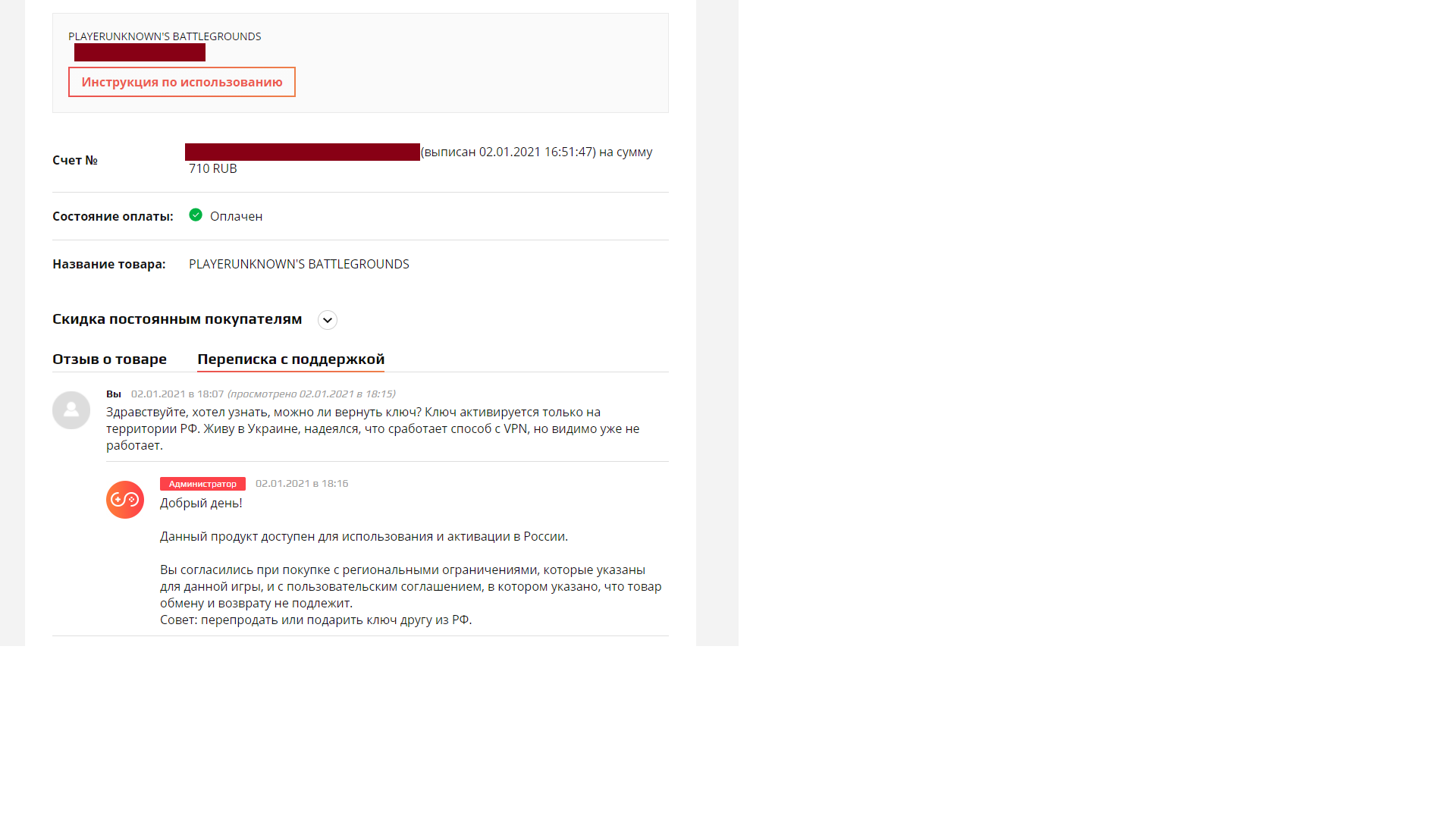 Продам ключик для PUBG. Купил его в интернет магазине, но оказалось, что его можно активировать только на территории Российской Федерации.