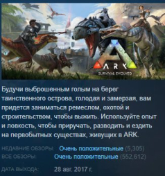 На бирже PlayNTrade Вы легко и быстро можете купить ключи ARK: Survival Evolved от 729 руб. Это недорого и безопасно, ведь все сделки на PlayNTrade проходят между игроками напрямую (под пристальным вниманием службы поддержки) или через гарантов. Число позиций в продаже на этой странице сейчас — 299 шт. Недавно добавленные товары стоят в списке выше остальных. Используйте фильтры и поиск по описанию, чтобы найти подходящий вариант. Обращайте внимание на отзывы и рейтинг продавца.