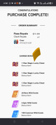 На бирже PlayNTrade Вы легко и быстро можете купить pass Royale Clash Royale от 648 руб. Это недорого и безопасно, ведь все сделки на PlayNTrade проходят между игроками напрямую (под пристальным вниманием службы поддержки) или через гарантов. Число позиций в продаже на этой странице сейчас — 298 шт. Недавно добавленные товары стоят в списке выше остальных. Используйте фильтры и поиск по описанию, чтобы найти подходящий вариант. Обращайте внимание на отзывы и рейтинг продавца.