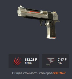 На бирже PlayNTrade Вы легко и быстро можете купить скины Counter-Strike: GO от 11.60 руб. за 1шт. Это недорого и безопасно, ведь все сделки на PlayNTrade проходят между игроками напрямую (под пристальным вниманием службы поддержки) или через гарантов. Число позиций в продаже на этой странице сейчас — 262 шт. Недавно добавленные товары стоят в списке выше остальных. Используйте фильтры и поиск по описанию, чтобы найти подходящий вариант. Обращайте внимание на отзывы и рейтинг продавца.