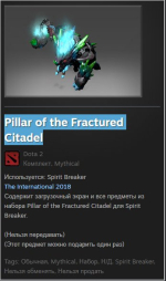 Герой: Spirit Breaker Продать предметы Сортировать: По дате добавления По рейтингу продавца По цене товара По наличию товара Сортировка: По убыванию По возрастанию Только продавцы онлайн 14.08.2025 ⚡Предметы Dota 2⚡Taurhorn Terror⚡ 232.00 p за 1 шт » 𝑷𝒍𝒂𝒚 𝒁𝒐𝒏𝒂 « 99%, 3324 отзыва на рынке 3 года 02.02.2026 Pillar of the Fractured Citadel колектор кеш бары,подарком 30 дней, Одежда, Spirit Breaker, Mythical... 2839.79 p за 1 шт MegaMarket 99%, 10183 отзыва на рынке 8 лет Все сделки защищены С 2015 года для Вас работает команда гарантов и агентов поддержки, обеспечивающая безопасность всех Ваших сделок!