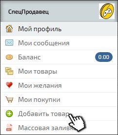 | СТАНЬ ПРОДАВЦОМ: Зайди на сайт со своим паролем, оформи профиль (анкета и аватарка) и нажми у себя в профиле кнопку «Стать продавцом». Теперь ты можешь БЕСПЛАТНО выкладывать на продажу сколько угодно товаров! | ДОБАВЬ СВОЙ ТОВАР: Добавь свой товар в магазин, чтобы его продать! |
